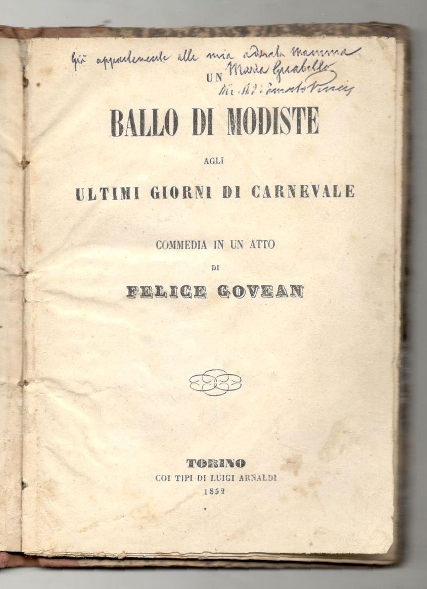 Un ballo di modiste agli ultimi giorni di Carnevale. Commedia in un atto | Libri antichi e moderni | Govean, Felice