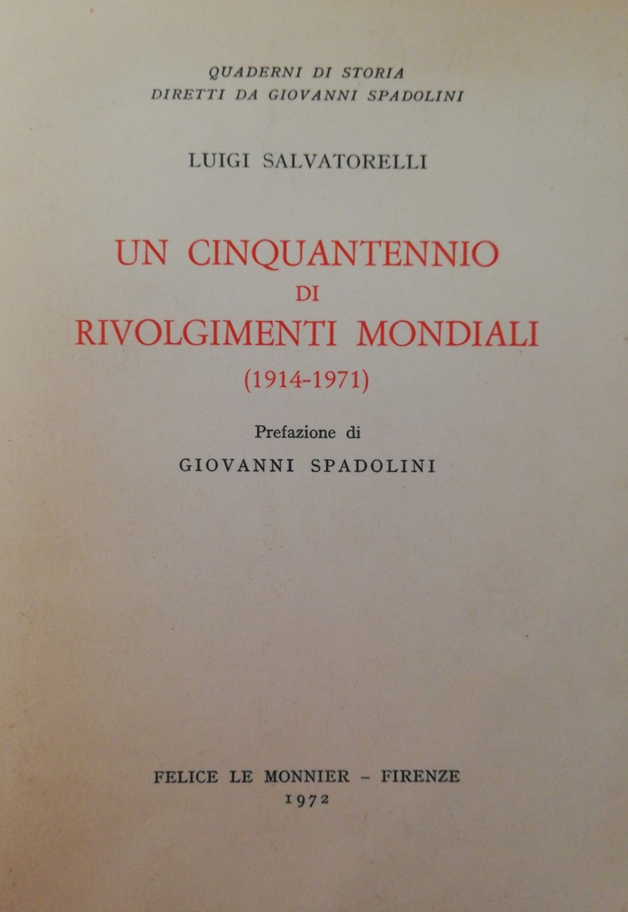 UN CINQUANTENNIO DI RIVOLGIMENTI MONDIALI (1914-1971) | Libri antichi e moderni | SALVATORELLI LUIGI, ,SALVATORELLI LUIGI