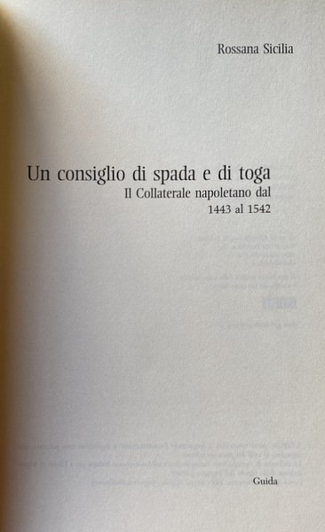 UN CONSIGLIO DI SPADA E DI TOGA. IL COLLATERALE NAPOLETANO DAL 1443 AL 1542 | Libri antichi e moderni | Rossana Sicilia