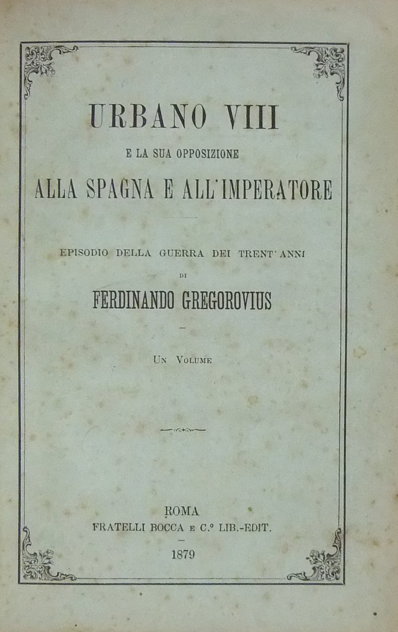 Urbano VIII e la sua opposizione alla Spagna e all'Imperatore. Episodio della guerra dei trent'anni. | Libri antichi e moderni | Gregorovius Ferdinand