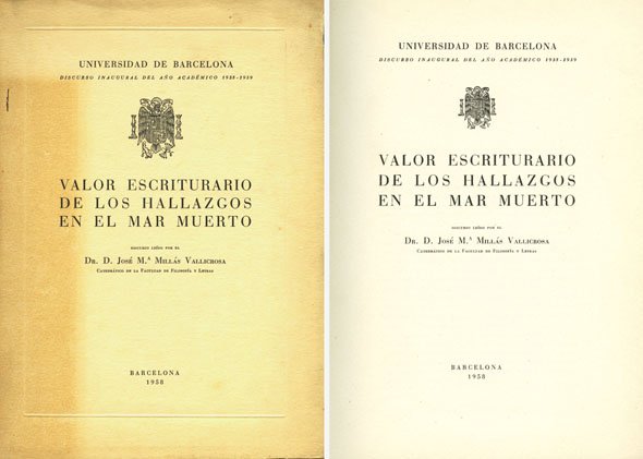 Valor escriturario de los hallazgos en el Mar Muerto. | Libri antichi e moderni | Millás Vallicrosa, José María.