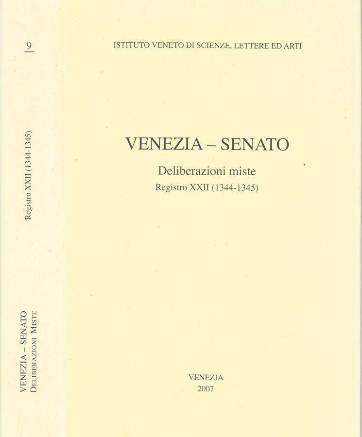 IX volume della collana Venezia - Senato - Deliberazioni miste, a cura dell'Istituto Veneto di Scienze, Lettere ed Arti, diretta da Maria Francesca Tiepolo, Dieter Girgensohn, Gherardo Ortalli. Pubblicazione realizzata con il patrocinio del Senato della Repubblica, con il contributo della Fondazione di Venezia. Buono stato, sovraccoperta originale in carta patinata, bordo poco sfregato, lievi ammaccature, macchie; coperta in similpelle, caratteri dorati in bassorilievo su piatto anteriore e dorso, pochi segni d'uso, taglio concavo con macchietta, pagine in ottimo stato. IV tavole, su carta patinata, con riproduzioni di documenti. Lingue: Italiano, Latino. Numero Pagine 376