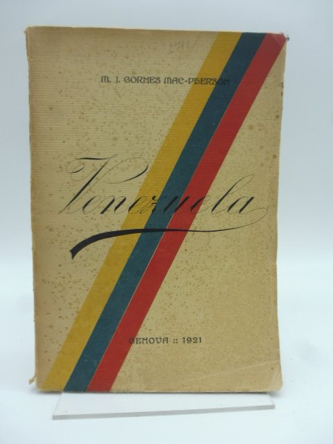 In 8 (cm 17 x 24), pp. 113 + (7) con tavole con riproduzioni fotografiche in bianco/nero su carta patinata fuori testo. Fioriture sparse alle pagine (in particolare alle tavole su carta patinata). Brossura editoriale con bruniture ai piatti. Traduzione italiana, curata da Camillo Rondolotti, dell'opera di Gornes Mac Pherson, console generale del Venezuela a Genova, sullo stato sudamericano con notizie relative al paese, alle citta', all'economia. In fine compaiono tabelle statistiche con: importazioni negli anni 1913-18; esportazioni negli anni 1913-18), quadro dimostrativo delle spedizioni di vapori e del movimento di esportazione dal Porto di Genova al Venezuela per l'anno 1920; l'esportazione dell'oro; statistica dell'esportazione di asfalto e petrolio; ecc.
