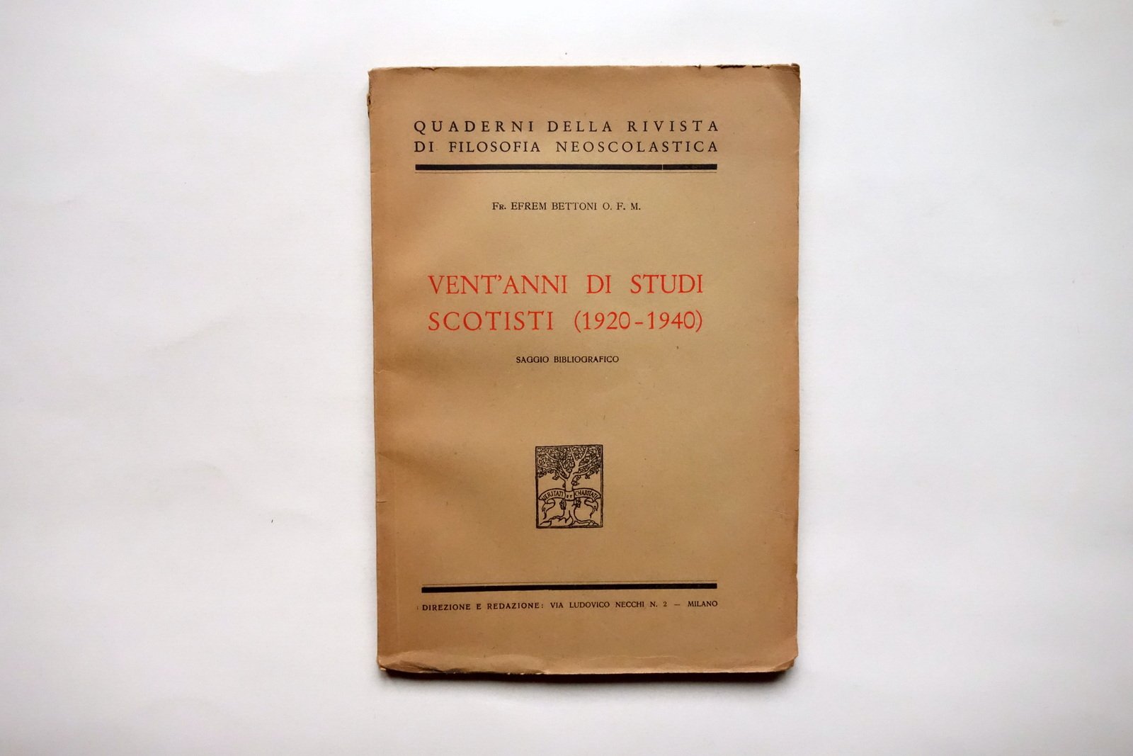 Vent'Anni di Studi Scotisti 1920-40 Saggio Bibliografico Efrem Bettoni 1943 | Libri antichi e moderni |