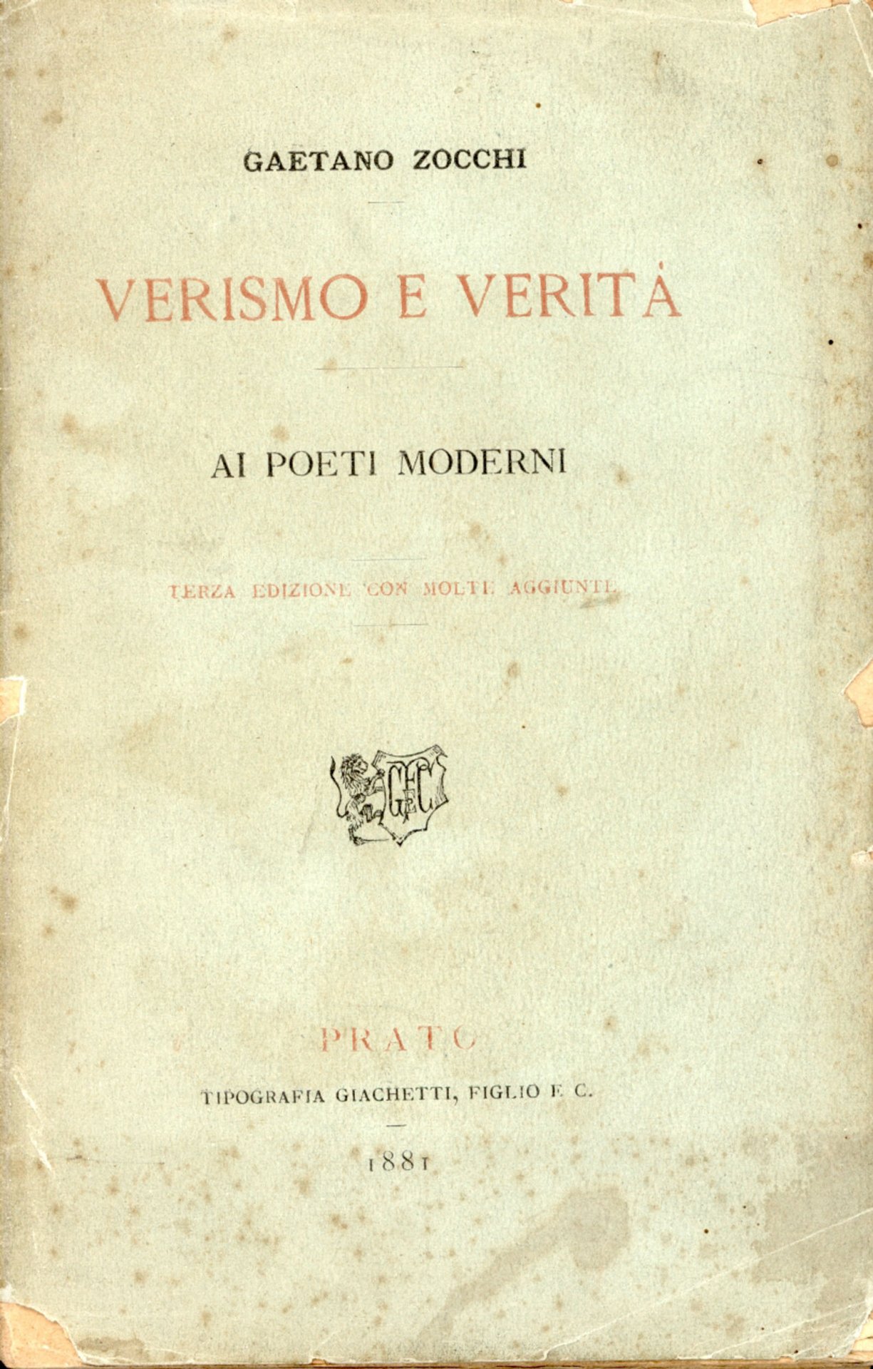 Verismo e verità. Ai poeti moderni | Libri antichi e moderni | Zocchi, Gaetano