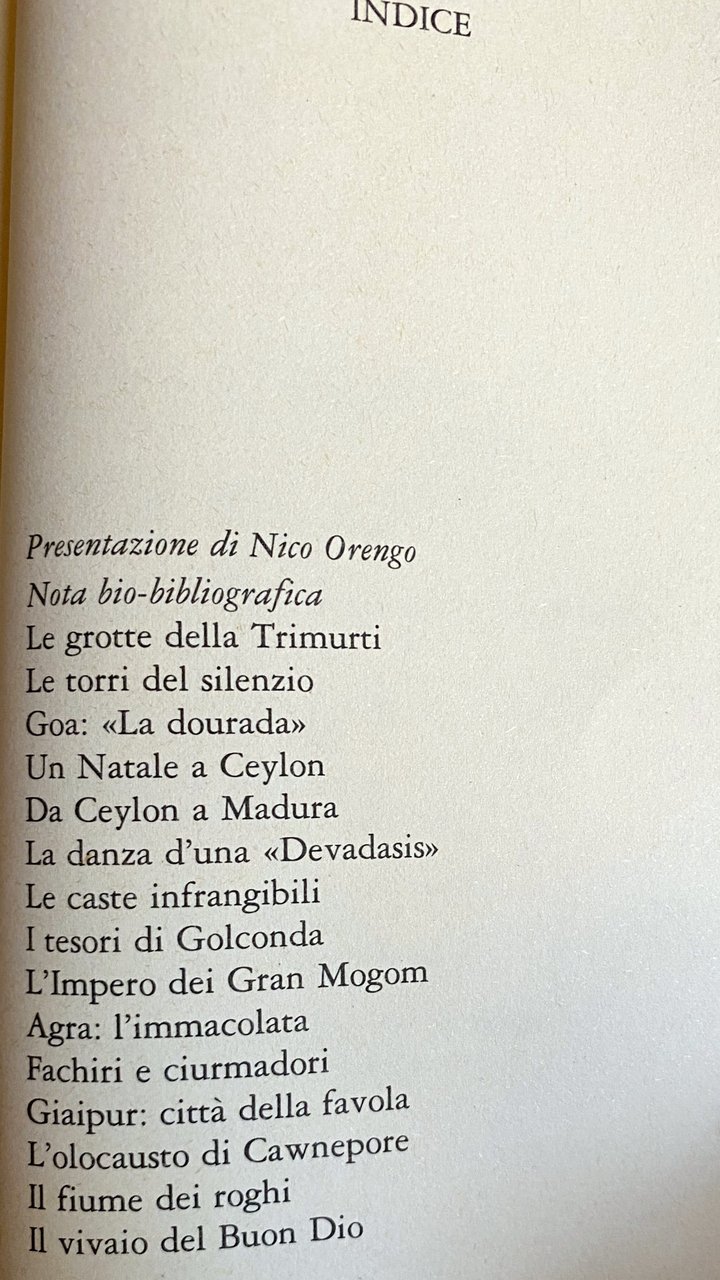 • Letteratura di viaggio, Letteratura Italiana, Letteratura contemporanea, Memorie, Biografie, Diari, Lettere, Corrispondenza, Reportage, Cultura indiana, Novecento, Viaggiatori, India, Giornalismo, Racconti, Colonialismo, Esotismo, Oriente, Orientalismo, CAneddotica, Articoli di giornale, Resoconti, Libri fuori catalogo, Collezionismo, Scrittori italiani, Poeti, Imperialismo