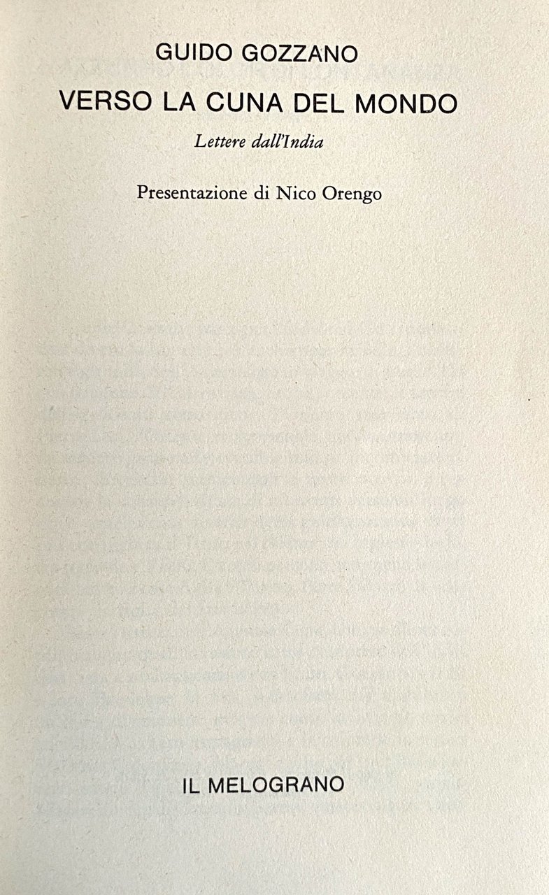 VERSO LA CUNA DEL MONDO: LETTERE DALL'INDIA (1912-1913) | Libri antichi e moderni | Guido Gozzano, Nico Orengo