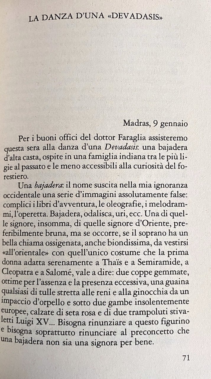 Soggetti: Letteratura di viaggio Italiana contemporanea Memorie Biografie Diario Lettere Corrispondenza Reportage Cultura indiana Novecento Viaggiatori Guarigione Tubercolosi Italianistica Giornalismo Europa Tigri Leopardo Pantera nera cingalese Racconti Comparazione Civiltà Visione del metodo comparativo Giovinezza Indra Divinità Fiume Metafora Ironia Indiani Animali Medicina Comparazione Diversità Colonialismo Esotismo Magia Oriente Caldo Malattia polmonare Morte Curiosità Inglesi Raccolte Appunti Articoli di giornale Resoconti Agra Bajadera Bellezza Benares Bambini Bombay Brahama Bramini Bronzo Caste Calcutta Ceylon Cingalese Città Cobra Daksha Devadasis Donne Elefanti Folla Foresta Gange Giaipur Giardino Gran Mogol Haiderabat Indigeni Indu Madura Malabar Madras Malinconia Marajà Marmo Minareti Moschea Nana Sahib Occidentale Pagoda Palazzi Palmizi Parsi Rangoon Sahib San Francesco Saverio Scimmie Sepoys Siva Sogno Tai-Mahal Templi Torre Trimurti Tropicale Turbante Tuticorin Vasco De Gama Visnu Zebù Tradizione Vacca sacra Teogonia Torri Silenzio Goa Dourada Impero Fachiri Ciurmadori Danza Olocausto Remember Cawnepore Occupazione Inghilterra Gran Bretagna Imperialismo Maiale Musulmani Islam religioni Spiritualità Yoga Roberto Carnero Hermann Hesse Journey Toward the Cradle of Mankind Pierre Loti Paolo Mentegazza Singh II Shiva Aldo Castellani Fachiri Luoghi comuni Turismo Emilio Salgari Pierre Loti Nirvana La Stampa Madame Angot Ketty Yogi Amalia Guglielminetti Borgese Farfalle Walter Binni Anceschi Sanguineti Crepuscolarismo God save the Queen Bungalows Libri fuori catalogo Collezionismo Scrittori italiani Poeti Voyage Travel literature Contemporary Italian Memories Biographies Diary Letters Correspondence Reportage Indian culture Twentieth century Travelers Healing Tuberculosis Italianism Journalism Europe Tigers Leopard Sinhalese black panther Stories Comparison Civilization Vision of the comparative method Youth Divinity River Metaphor Irony Indians Animals Medicine Comparison Diversity Colonialism Exoticism Magic Orient Heat Lung disease Death Curiosities English Collections Notes Newspaper Articles Reports Beauty Benares Children Brahmins Bronze Castes Sinhalese City Cobra Women Elephants Crowd Forest Ganges Garden Grand Mogul Indigenous People Melancholy Marble Minarets Western Mosque Pagodas Palaces Palm Trees Monkeys Dream Temples Turban Tradition Holy Cow Theogony Towers Silence Empire Fakirs Pirates Dance Holocaust Occupation England Great Britain Imperialism Pig Muslims Religions Spirituality Fakirs Clichés Tourism Butterflies Crepuscularism Out of print books Collectibles Italian writers Poets