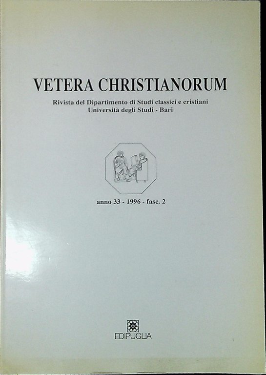Vetera Christianorum Rivista del Dipartimento di Studi classici e cristiani Università degli Studi-Bari anno 33 1996 Fasc.2 | Libri antichi e moderni | AA .VV., ,AA .VV.