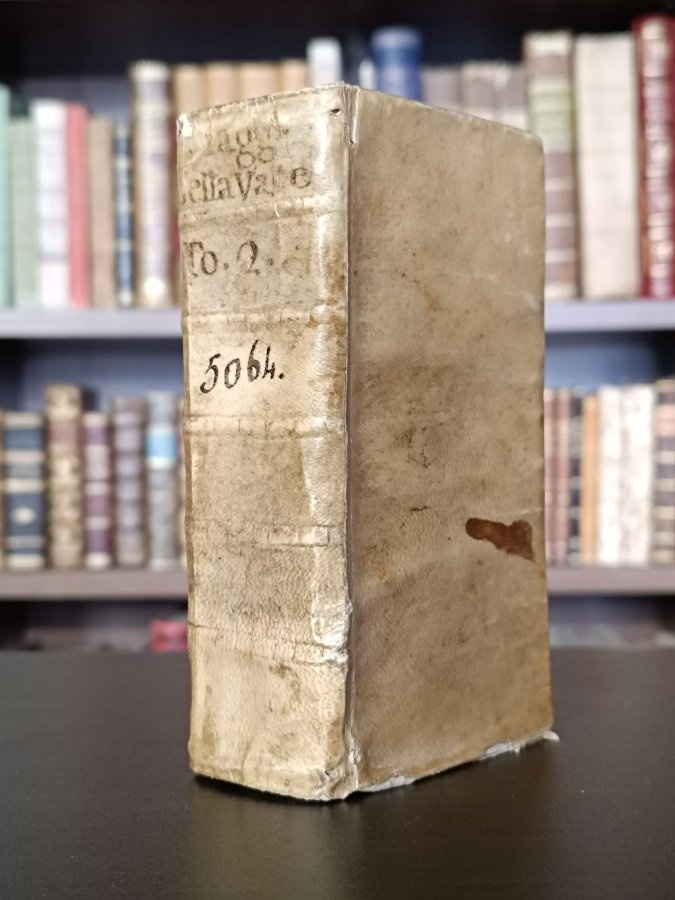 In-12° (cm. 15,1), legatura coeva in piena pergamena con titolo manoscritto al dorso (lievi tracce d'uso, leggermente stanca); pp. 636 in buono stato (lievi fioriture sparse, piccola mancanza all'angolo del frontespizio con minimo fastidio, antica firma di appartenenza). Si tratta del secondo dei quattro volumi dei viaggi di Pietro Della Valle, stampati dal Longhi. Cfr. Vinciana 1387 per la prima edizione del 1672, di cui la presente è una fedele ristampa. Buon esemplare. (SF1)
