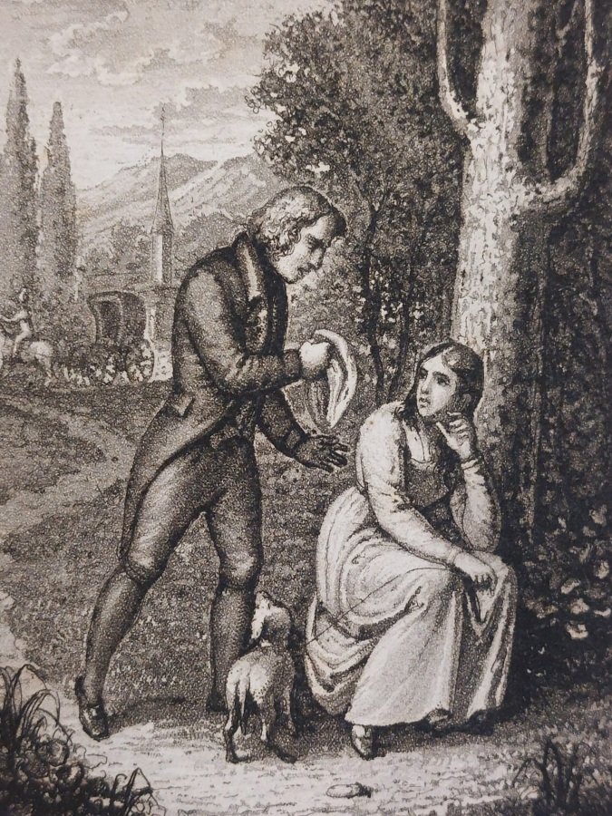 In-16º (cm. 14,5), brossura officinale a stampa (lievi segni d'uso); pp. 245, [1 b.] in buono stato, in barbe, con una tavola d'illustrazione a p. pagina in antiporta; lievi fioriture sparse. Traduzione foscoliana di 'A Sentimental Journey through France and Italy', pubblicato incompiuto nel 1768 sotto lo pseudonimo shakespeariano di Yorick. Buon esemplare. (SJ1)