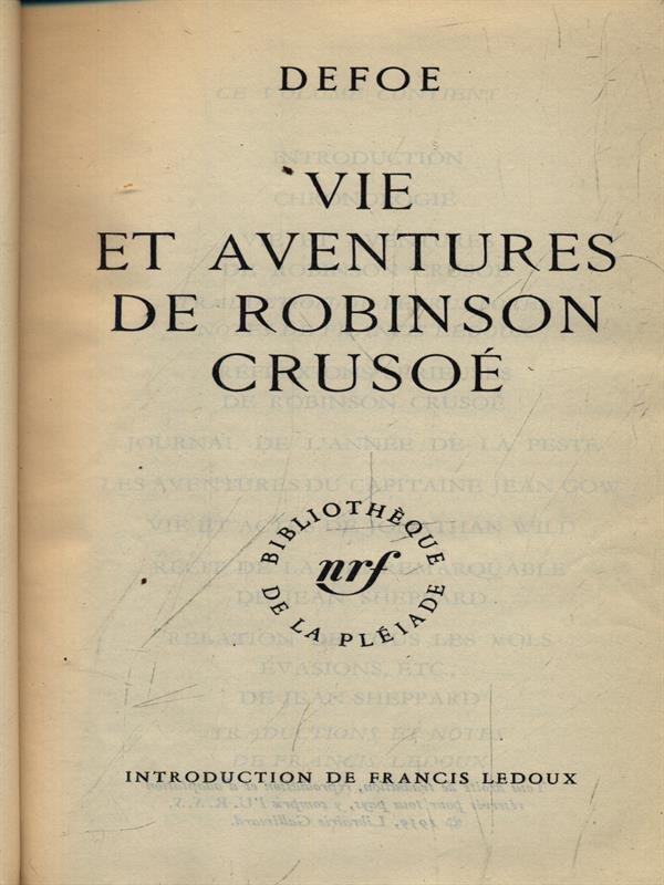 Vie et adventures de Robinson Crusoe | Libri antichi e moderni | Defoe