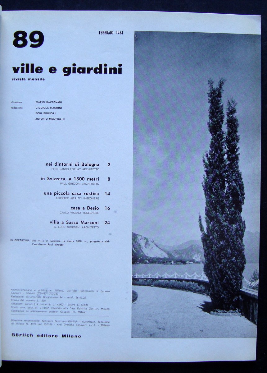 ville e giardini rivista di Architettura Arredamento numero 89 Frebbraio 1964