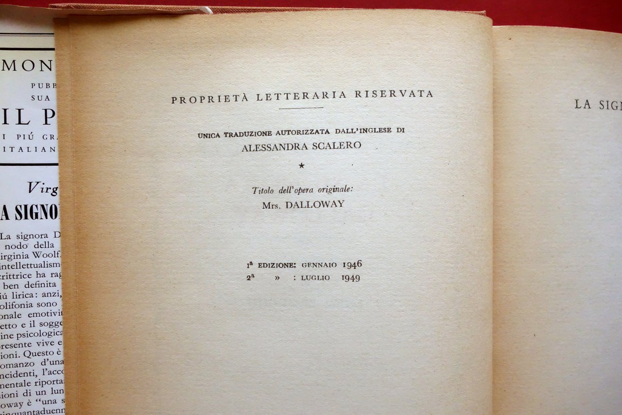 Virginia Woolf La Signora Dalloway Illustrazioni Broggini Mondadori 1949 2∞ Ed. | Libri antichi e moderni |