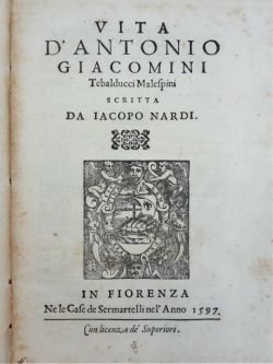 Vita d'Antonio Giacomini Tebalducci Malaspini. | Libri antichi e moderni | Nardi Jacopo.