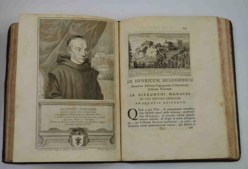 Cm. 27,5, pp. xv (1) 254 (2). Con bella vignetta al frontespizio, alcune figure nel testo e 10 belle tavole fuori testo incise in rame, tra cui il ritratto dell'autore all'antiporta. Solida legatura coeva in piena pelle, dorso a nervi e piatti inquadrati da fregio in oro. Segni di abile restauro al dorso, peraltro esemplare genuino e ben conservato. Si tratta della prima edizione in volume precedentemente stampata nell'opera del Brocchi sui Santi fiorenti. Come recitato dal titolo si aggiunge in quest'edizione: "un bellissimo opuscolo De Vita Solitaria. e altra nuova operetta concernente i compagni d'esso Beato nella solitudi delle celle. Le tavole raffigurano: effigie del beato Flammini incisa da P.A. Pazzi; vedute di Camaldoli, Vallombrosa e La Verna, incise da T. Verkruyf, S. Della Bella e I. Ligozzi; effigie di S. Bernardo Uberti delineata da C. Maratta ed incisa da C. Gregori; ritratto di I. Hugford, inciso da F. Gregori; effigie dei 10 Beati, incisa da P.A. Pazzi; immagine di Pietro Irneo, inc. da G.B. Lapi; 2 piante e il prospetto della cappella dell'altare dei 10 Beati, queste ultime tre a doppia pagina, immagine di S. Giovanni Gualberto. Cfr. Moreni, I, 171-172 .