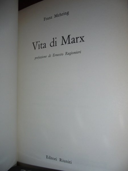 Franz, Mehring. Roma, Editori Riuniti, 1972. Vita di Marx. In-8°, similpelle rossa e oro con sovracopertina. vii, 557 pp. La sovracopertina presenta gli usuali taglietti al vertice. Il libro è ben conservato. Uff. pacco C. carc.