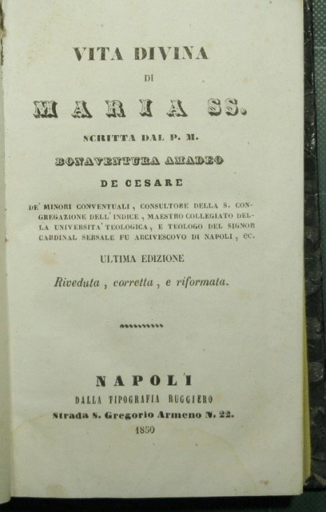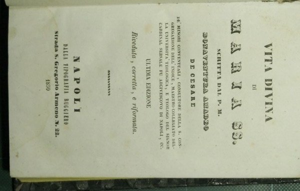 Vita divina di Maria SS. | Libri antichi e moderni | De Cesare Bonaventura Amadeo