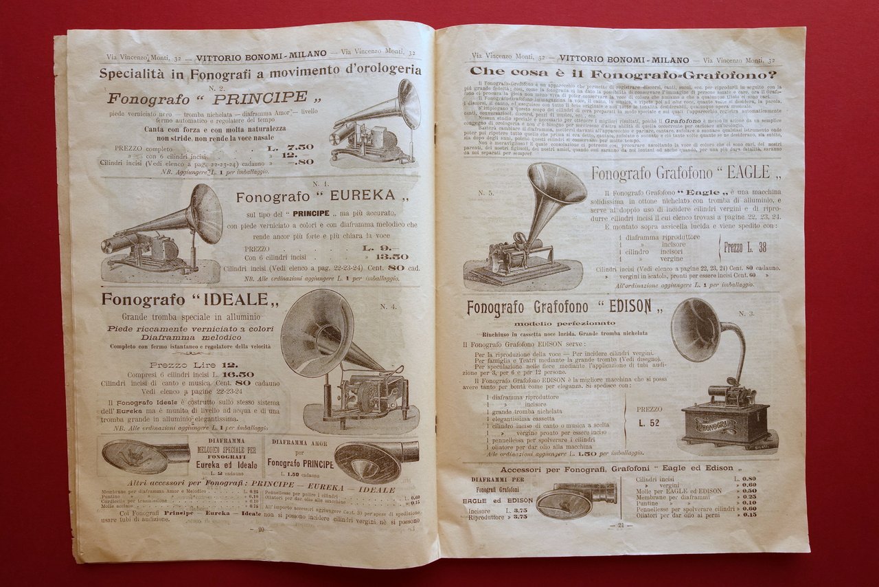 Vittorio Bonomi Milano Catalogo Fonografi Grammofoni Rivoltelle Binocoli 1904