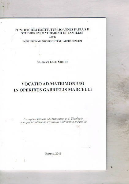 Vocatio ad matrimonium in operibus Gabrielis Marcelli. Exceptum Theseos ad Doctoratum in S. Theologia… | Libri antichi e moderni | Stikker Szabolcs Louis.