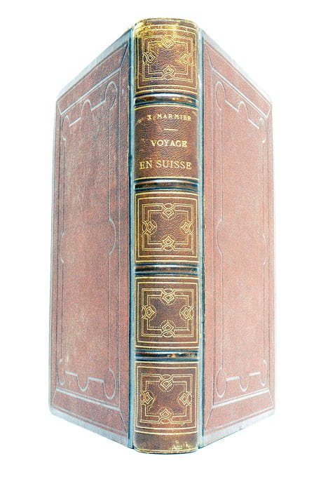 XXIII (+ I) + 468 pages. 26 planches hors-texte. (27x18 Cm). Demi-percaline brun. Plats estampé à frois. Dos à nerfs richement doré et orné. Tranches dorées. Partie supérieure du dos un peu frotté. Exemplaire complet et en bon état illustré de 26 planches gravées sur acier, dont 8 coloriées à la main représentant les costumes suisses et protégées de serpentes. Xavier Marmier était un homme de lettres français, voyageur et traducteur des littératures européennes du Nord. Auteur non seulement de récits de voyage mais aussi de traductions, de poèmes et de romans, Xavier Marmier a surtout contribué à faire connaître en France la littérature scandinave et germanique. Bibliophile, il laisse dans son testament 6 000 ouvrages à la bibliothèque de Pontarlier et 1 000 francs aux bouquinistes des quais de Paris. Rousseurs éparses. Exemplairer en très bon état.