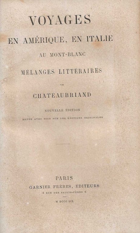 Voyages en Amerique , en Italie au Mont-Blanc . Mélanges litteraires | Libri antichi e moderni | Chateaubriand