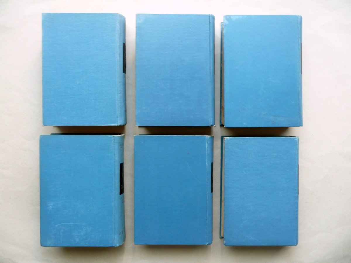 Winston Churchill, La Segunda Guerra Mondial Volume I: Se cierne la tormenta Volume II: Su hora mas gloriosa Volume III: La gran alianza Volume IV: El vuelco del destino Volume V: El cerco se cierra Volume VI: Triunfo y tragedia Ediciones Peuser, Buenos Aires 1952, cm 23,5x16, pp. 696 (volume I); pp. 660 (volume II); pp. 788 (volume III); pp. 824 (volume IV); pp. 624 (volume V); pp. 664 (volume VI), tutti con qualche ill. in b/n nel t. e fuori t.; tutta tela ed. con titolo in oro al dorso. Opera in sei volumi. Mancanza delle sovraccoperte editoriali. Testo in spagnolo. Condizioni di conservazione Volumi tutti ben conservati con tracce d'uso; coperte con alcune minime abrasioni e qualche piccolo difetto agli angoli dei piatti e alle cuffie; tagli con alcune minime bruniture. Interni buoni; pagine con lievi accenni d'ingiallimento, in particolare quelle dei primi tre volumi. Mancanza delle sovraccoperte editoriali. Opera in sei volumi. Mancanza delle sovraccoperte editoriali. Testo in spagnolo. SETT116.L11090/ST87