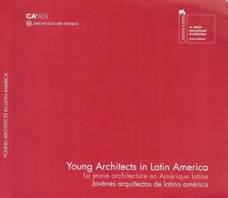 Catalogo della mostra "Young Architects in Latin America", organizzata nel 2018 nell'ambito della 16a Mostra Internazionale di Architettura - Biennale di Venezia, presso Ca'Asi. Copertina flessibile in cartoncino opaco rosso ben mantenuta, leggera flessione nell'angolo superiore in prima, velatura di colore rosso della copertina nel primo e ultimo foglio; lieve ombratura tracce di sporco ai tagli, le pagine sono prive di imperfezioni e riccamente illustrate con figure e fotografie a colori e in nero nel testo, quest'ultimo è in lingua francese, inglese e spagnola. N. pag. 287.