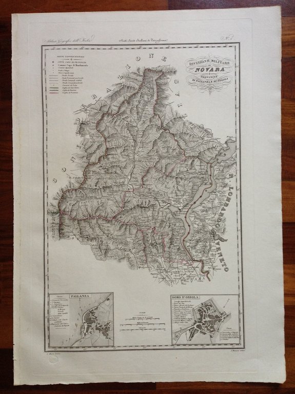 Stampa antica originale acquaforte, DIVISIONE MILITARE DI NOVARA PROVINCIE DI PALLANZA E DI OSSOLA tratto da ATLANTE GEOGRAFICO DEGLI STATI ITALIANI COROGRAFIA FISICA STORICA E STATISTICA DELL'ITALIA di Attilio Zuccagni - Orlandini Firenze,1840. Tecnica: incisione su rame all'acquaforte Dimensioni: con margini bianchi cm 63x45.5 Note: in basso a sinistra timbro a secco dell'Editore; confini con coloritura ad acquarello coeva; con le carte della città di Pallanza e del Duomo D'Ossola. Condizioni di conservazione Ottima con ampi margini (vedi foto). NON TRATTIAMO RIPRODUZIONI OGGETTO ASSOLUTAMENTE ORIGINALE INCZC.0105 MT