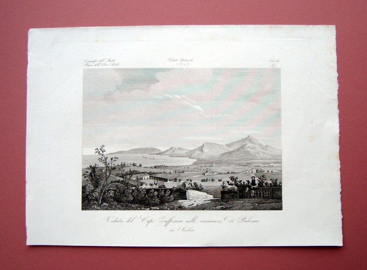 Zuccagni Orlandini Veduta Capo Zafferano Palermo Sicilia acquaforte orig 1840 | Libri antichi e moderni |