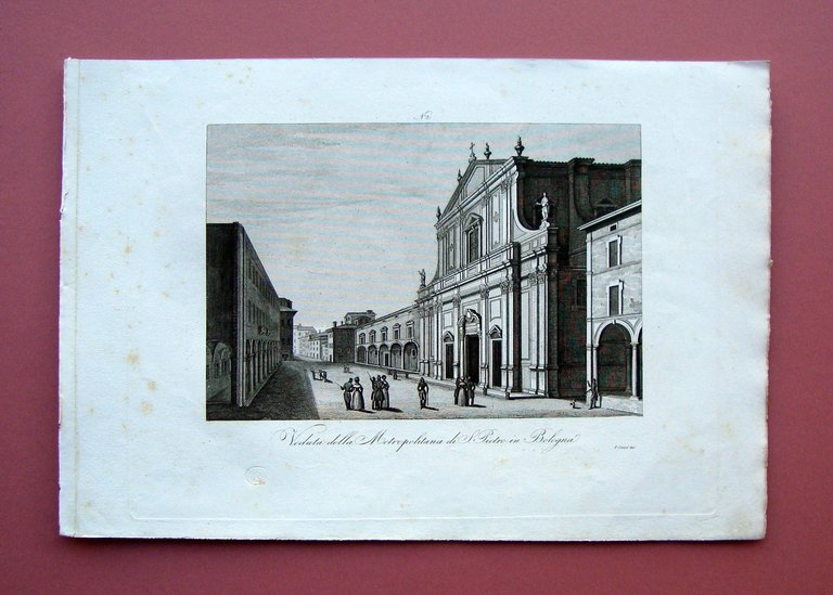 Stampa antica originale acquaforte, Veduta della Metropolitana di S. Pietro in Bologna tratto da ATLANTE GEOGRAFICO DEGLI STATI ITALIANI COROGRAFIA FISICA STORICA E STATISTICA DELL'ITALIA di Attilio Zuccagni - Orlandini Firenze,1844. Tecnica: incisione su rame all'acquaforte. Dimensioni: con margini bianchi cm 31x46 Note: in basso a sinistra timbro a secco dell'Editore Condizioni di conservazione Ottime con ampi margini; qualche leggero foxing (vedi foto). NON TRATTIAMO RIPRODUZIONI OGGETTO ASSOLUTAMENTE ORIGINALE INCZC.0462 blu