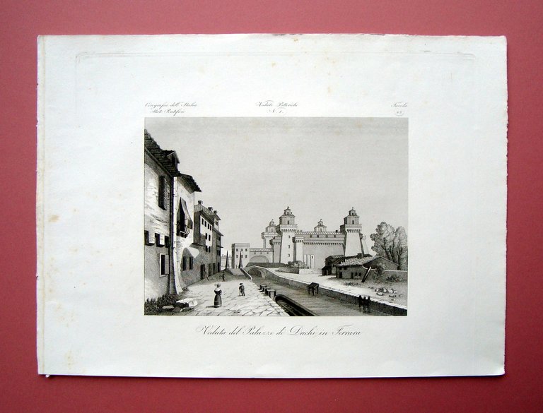 Zuccagni Orlandini Veduta Palazzo dË Duchi Ferrara acquaforte originale 1840 | Libri antichi e moderni |