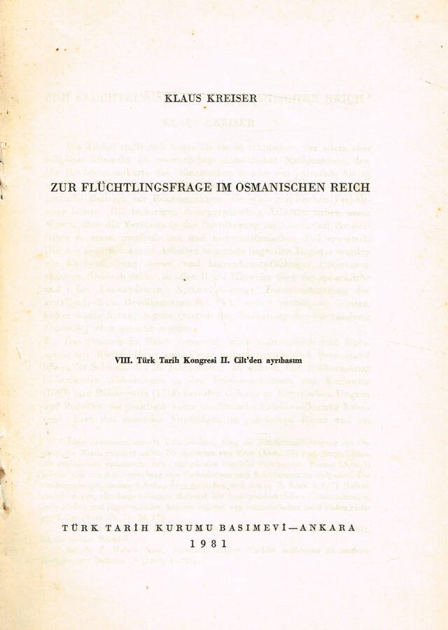 ZUR FLUCHTLINGSFRAGE IM OSMANISCHEN REICH