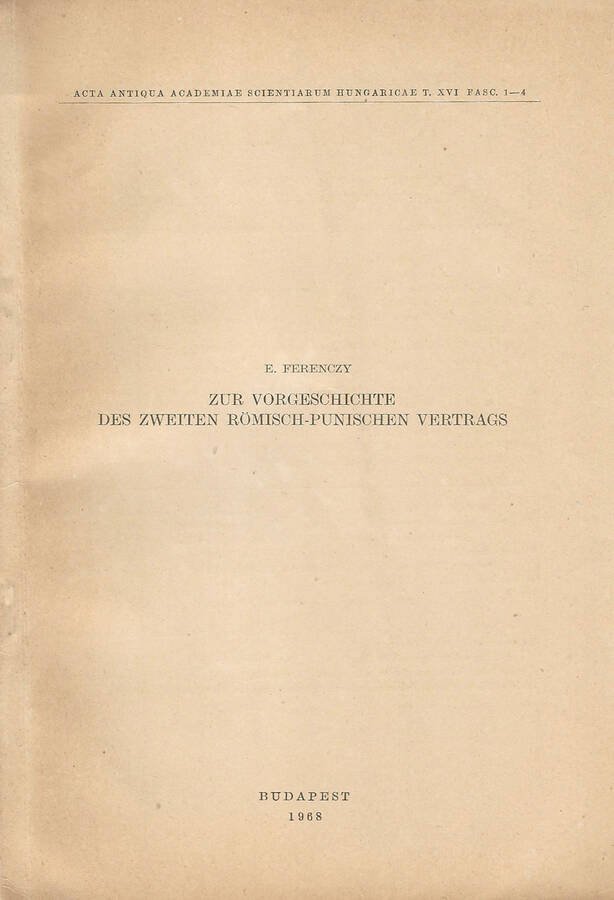 Zur Vorgeschichte Des Zweiten Romisch - Punischen Vertrags | Libri antichi e moderni | E. Ferenczy
