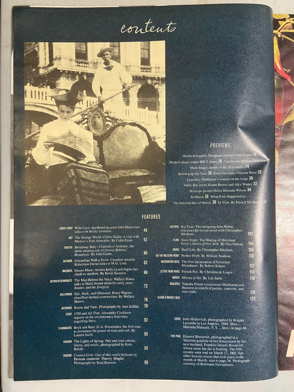 ANDY WARHOL INTERVIEW MAGAZINE,March 1989- JOHN MALKOVICH