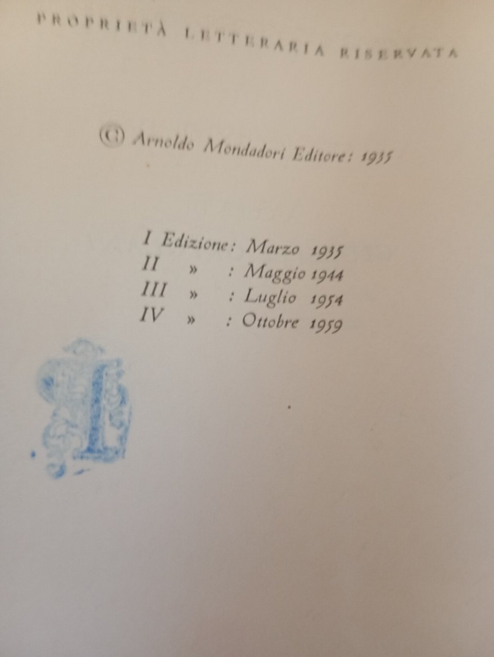 Sovracopertina con alcuni strappi e segni di usura, come da foto. Copertina rigida con lieve ammaccatura nella parte superiore del dorso, pagine interne buone, come da foto