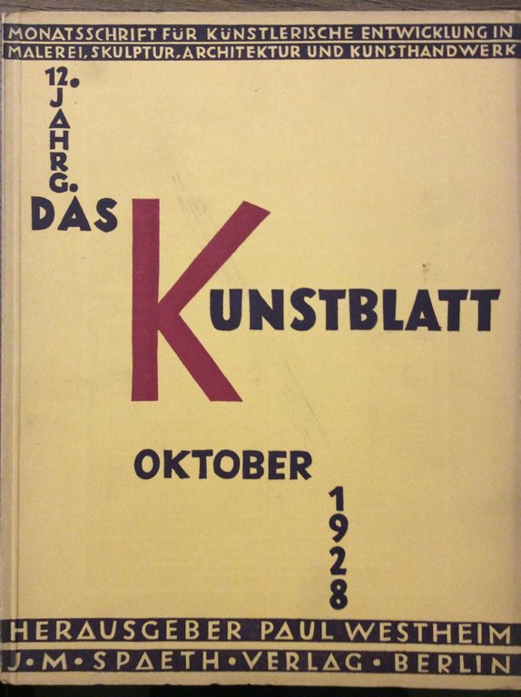 DAS KUNSTBLATT. HEFT 10 - OKTOBER 1928 (12. JAHRGANG). - Monatsschrift für künstlerische Entwicklung in Malerei, Skulptur, Architektur Und Kunsthandwerk. Herausgeber: Paul Westheim. | Periodici |