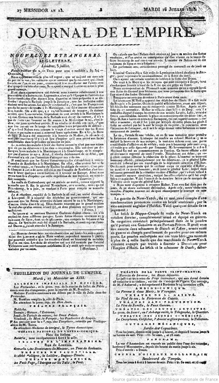 JOURNAL DES DEBATS et JOURNAL DE L'EMPIRE.