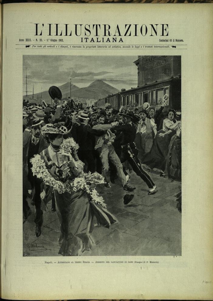 In-4, brossura. In buono stato di conservazione. In questo numero:Napoli - Attentato al treno reale - Arresto del lanciatorie di sassi.