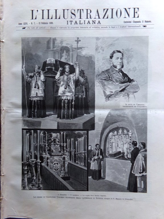 L'Illustrazione Italiana 12 Febbraio 1899 Ceneri Colombo Vespri Palermo Tolstoj