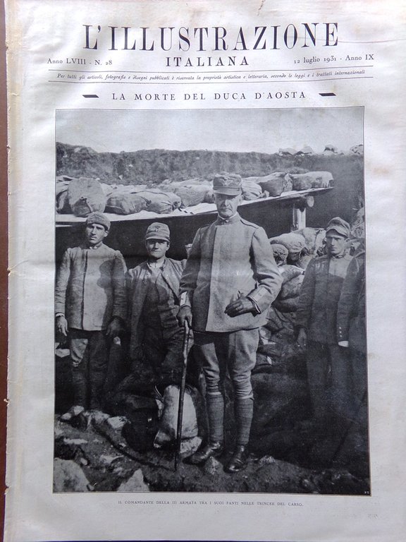 L'illustrazione Italiana 12 Luglio 1931 Morte del Duca d'Aosta Balbo Grand Hotel