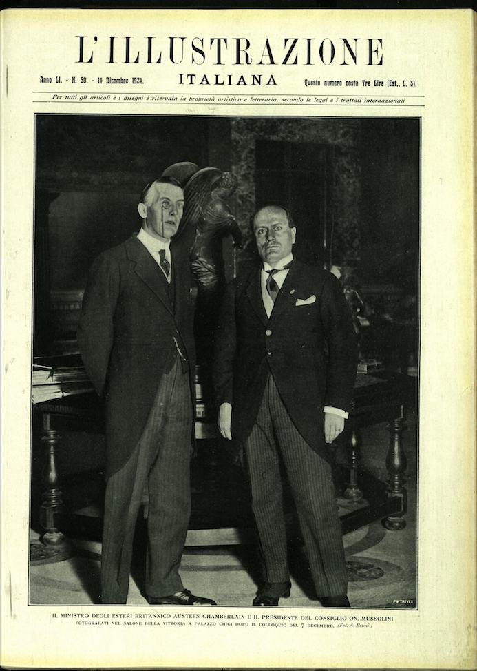 In-4, brossura. In buono stato di conservazione. In questo numero:Il ministro degli esteri britannico Austeen Chamberlain e il presidente del consiglio On. Mussolini.