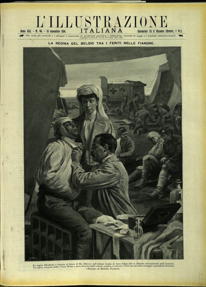 In-4, brossura. In buono stato di conservazione. In questo numero:La Regina del Belgio tra i feriti nelle Fiandre.