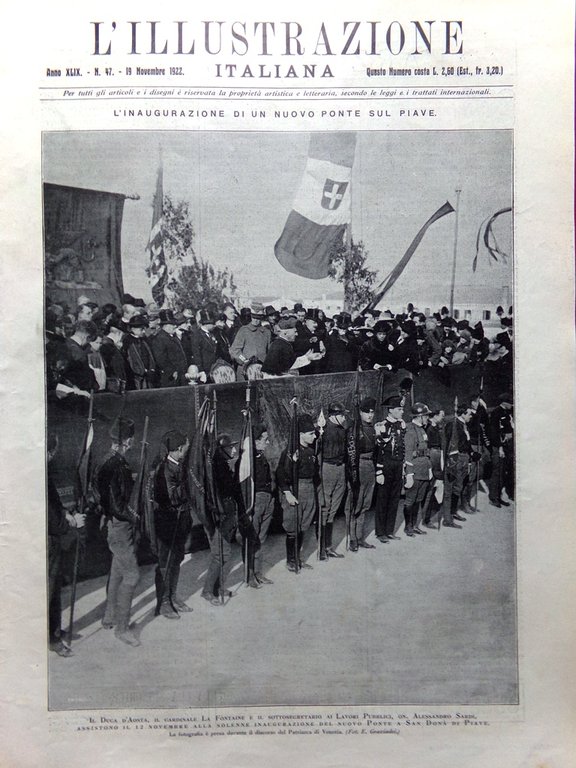 L'Illustrazione Italiana 19 Novembre 1922 Ponte sul Piave Università Pisa Monza