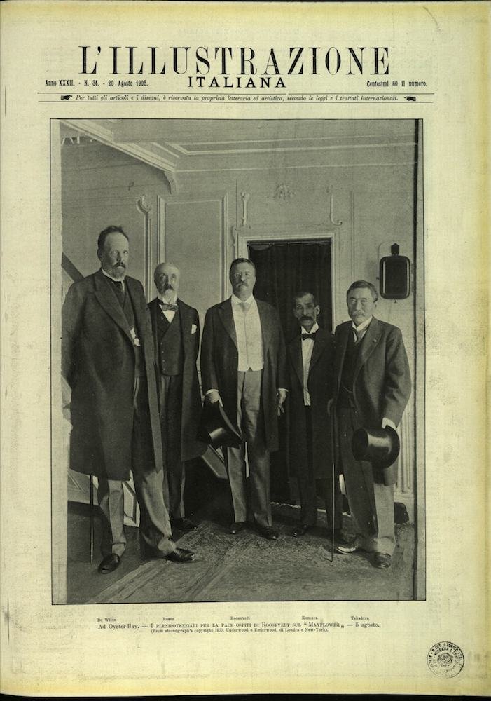 In-4, brossura. In buono stato di conservazione. In questo numero:Ad Oyster-Bay - I plenipotenziari per la pace ospiti di Roosevelt sul Mayflower' - 5 agosto.