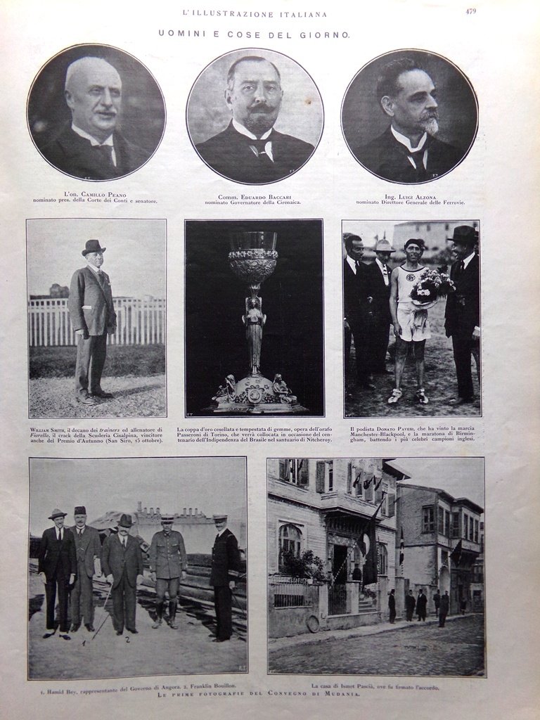 Uomini e cose del giorno: le prime fotografie del convegno di Mudania, Peano Baccari e Alzona, il podista Donato Pavesi