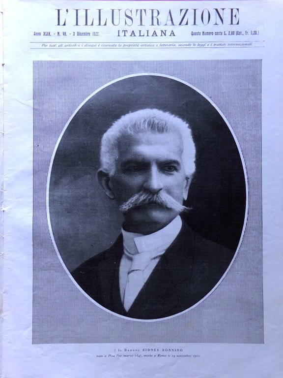 L'Illustrazione Italiana 3 Dicembre 1922 Morte Sonnino Battisti Manzoni Milano | Periodici |