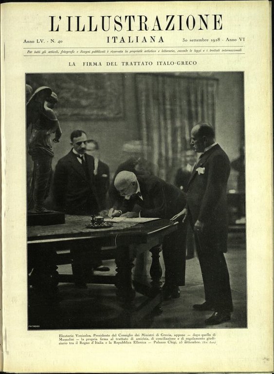 In-4, brossura. In buono stato di conservazione. In questo numero:La firma del trattato italo-greco.