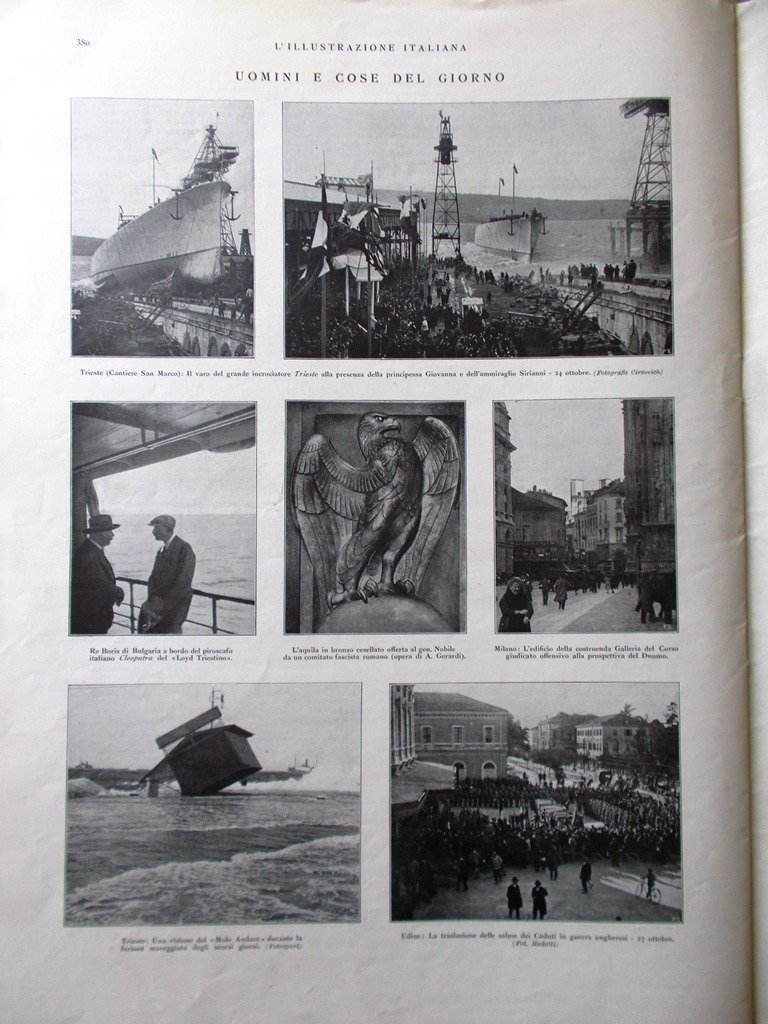 Uomini e cose del giorno: Re Boris di Bulgaria a bordo del piroscafo italiano Cleopatra, il varo dell'incrociatore Trieste