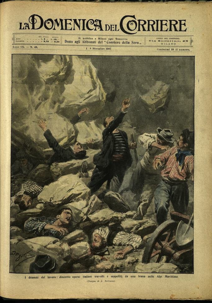 In-4, brossura, in buono stato di conservazione. In questo numero:"Un vapore italiano urtato violentemente ed affondato da un vapore belga carico di carbone presso Cartagena.""I drammi del lavoro, dieciotto operai italiani travolti e seppelliti da una frana nelle Alpi Marittime.".